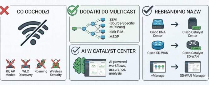 Od 19 marca 2026 r. obowiązuje nowa wersja egzaminu CCNP ENCOR 350-401 – v1.2, która zastąpiła obowiązującą od września 2023 r. wersję v1.1. Jeśli przygotowujesz się do certyfikatu CCNP Enterprise lub CCIE Enterprise Infrastructure, poniżej konkretne zmiany — co zniknęło, co doszło i co pozostało bez zmian.